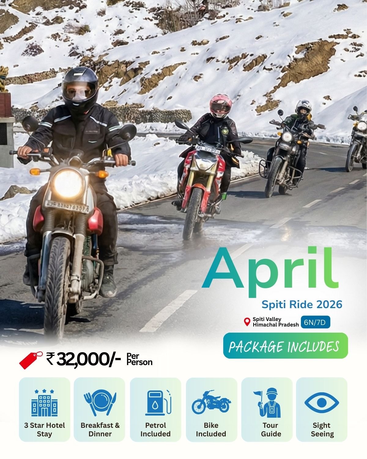Our Spiti ride packages are built for true mountain riders. Tackle high-altitude roads, remote valleys, and legendary passes with expert support, reliable bikes, and a like-minded riding community. Less planning, more riding—just you, the road, and the Himalayas.