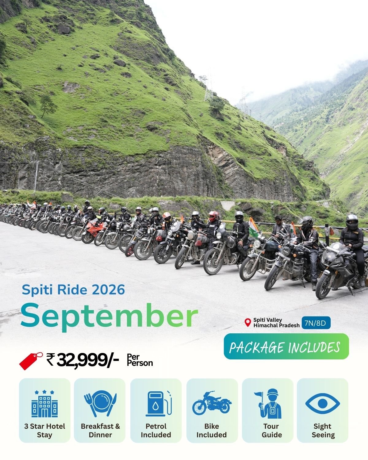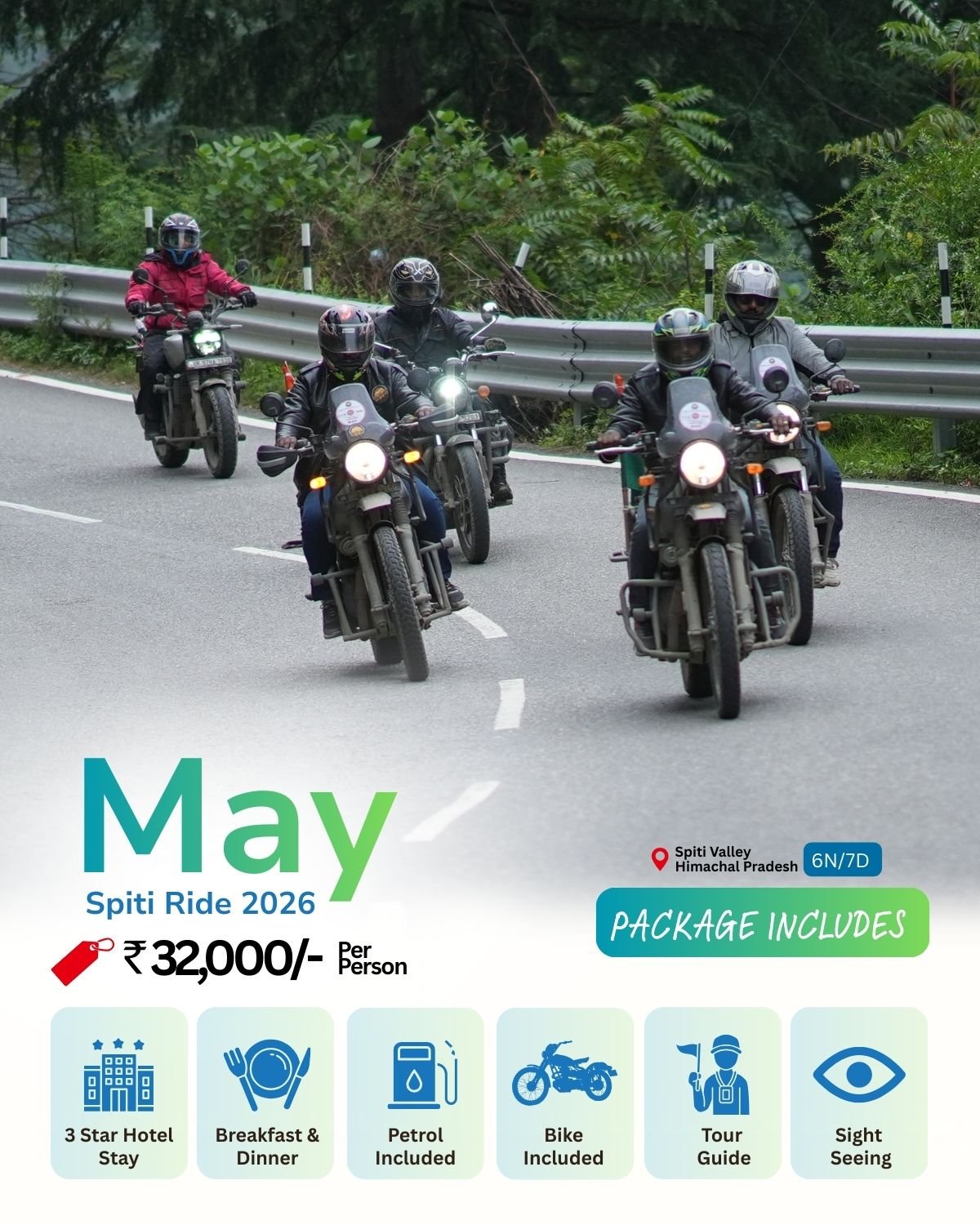 Select from our range of motorcycles built for the rugged terrains of Spiti—designed for comfort, power, and the ultimate thrill of the open Himalayan roads.